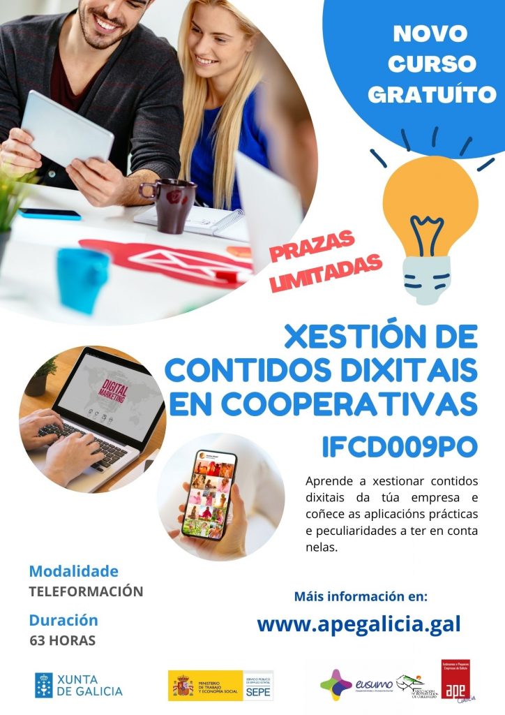 Gestión de contenidos digitales en cooperativas (63 horas). Con este curso aprenderá a gestionar contenidos digitales de su empresa y conocerá las aplicaciones prácticas y sus peculiaridades a tener en cuenta.