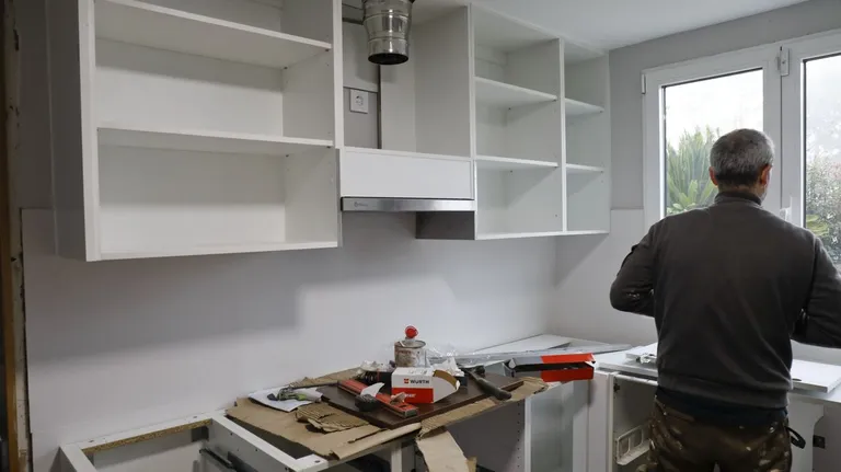 Un carpintero trabajando en la reforma de una cocina. XOAN A. SOLER