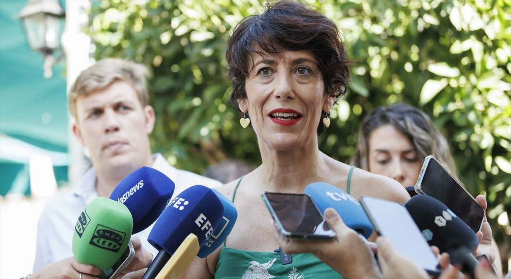 Elma Saiz, ministra de Seguridad Social, hablando para los medios. Europa Press.