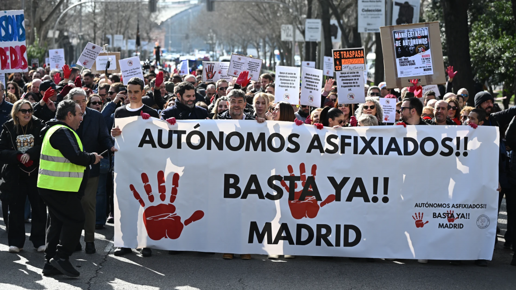 Entre esas peticiones, está la exención del IVA hasta 85.000 euros, rebajas en el IRPF, la reducción de cuotas o mejoras en prestaciones como el cese de actividad o las bajas. “Somos trabajadores, no defraudadores” o “Tenemos derechos” han sido algunos de los lemas que coreaban en la manifestación, con menos asistencia que la anterior convocatoria, y en la que también se oían insultos al presidente del Gobierno, Pedro Sánchez.